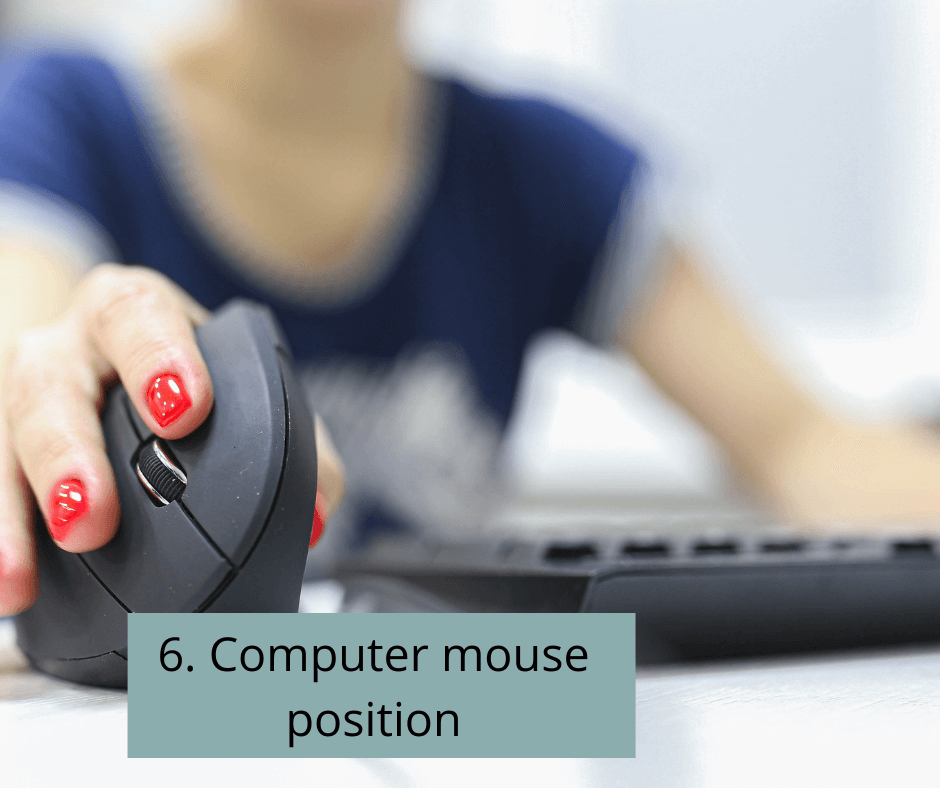 Placing the computer mouse too close to your body will hike up your shoulder. Too far away and you will round your shoulder to stretch forward.