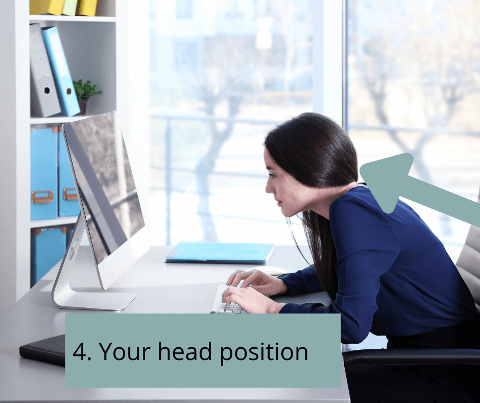 Test: Ask someone to look at you from the side and see where your head or chin are positioned. It always helps to know what you look like from the side (we often don’t realize what we consistently do causes our discomfort.)
