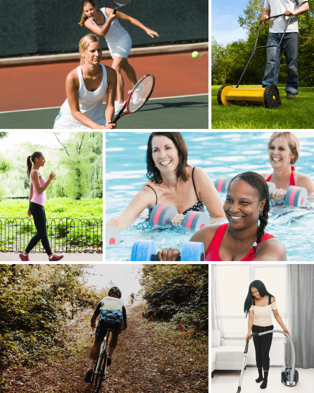 Moderate-intensity exercises are ‘physical activities make your heart beat a little faster and your breathing a bit harder. It’s like a level of exercise that feels somewhat challenging, but you’re not completely exhausted.’- Cleveland Clinic
